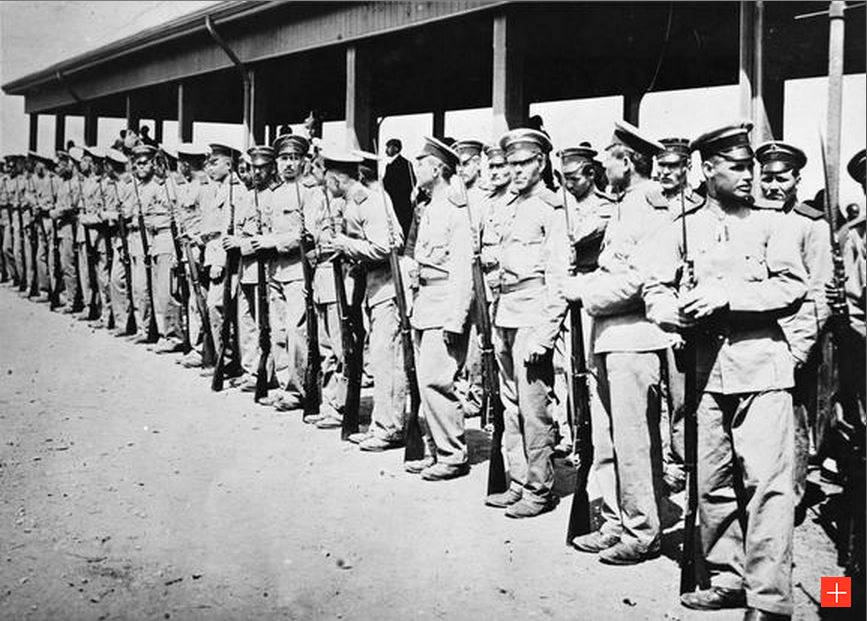Кавказская кампания 1914-1918 Белая армия на улицах Тифлиса, Грузия, 1918.