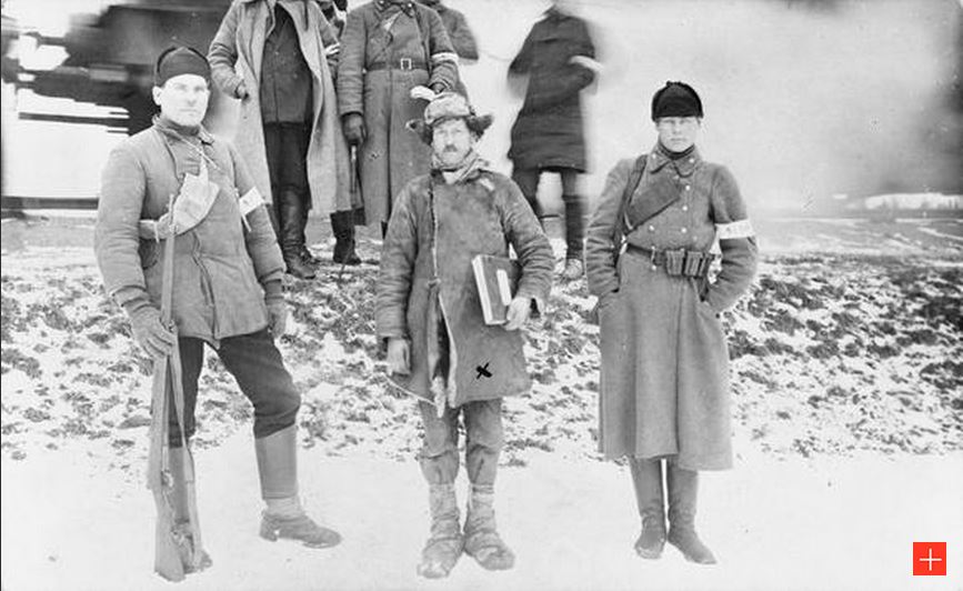 Эстонский комиссар-большевик (в центре) захваченный солдатами Эстонской национальной армии вблизи Палупера (Palupera), район Тарту. THE ESTONIAN WAR OF INDEPENDENCE 1918-1920