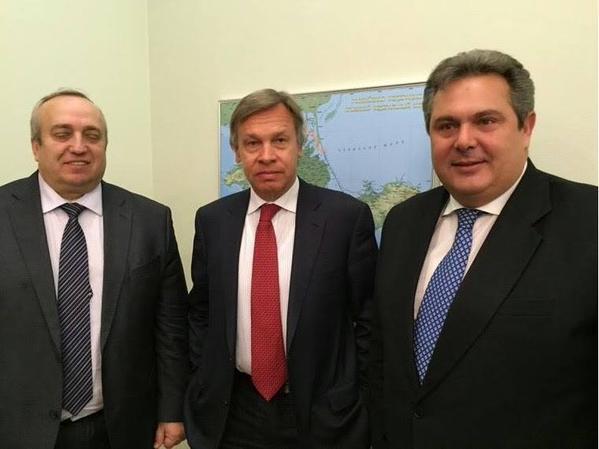 Слева направо: депутат ГД РФ Клинцевич, депутат ГД РФ Пушков, будущий министр обороны Греции Камменос