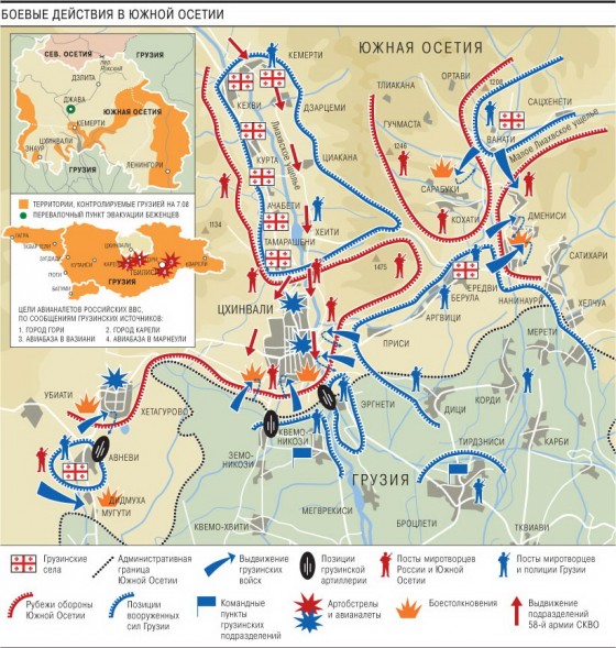 03:25 Подразделения вооружённых сил Грузии занимают Мугути и начинают наступление в направлении Хетагурово, Земо-Никози и Цхинвала.
