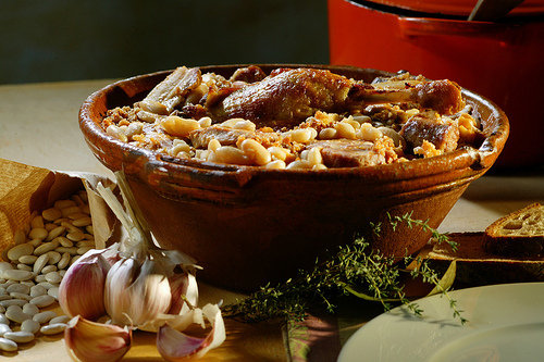 Ох, а я из блюд больше всего люблю «касуле» (cassoulet). Что это? Это жаркое из мясного ассорти из фасолью, такая сытаная, идеальная зимняя пища. В глиняном горшочке готовится мелко нарезанное мясо — например, жирные колбаски и утка — и белая фасоль.