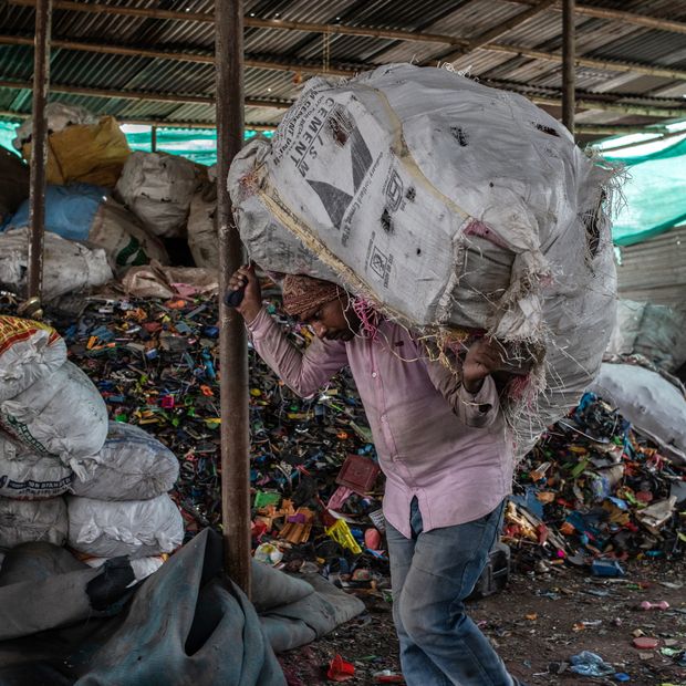 Индийская индустрия переработки предоставляет работу миллионам людей, от сборщиков на улицах и на свалках до более высокого уровня фабрик, которые занимаются переработкой.