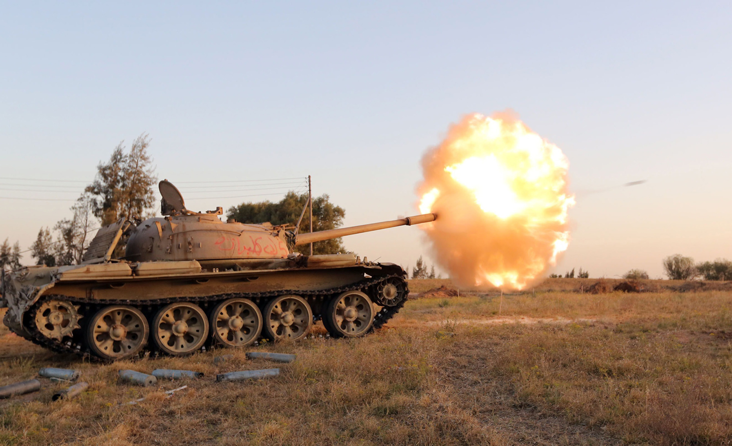 Бойцы движения "Рассвет Ливии" стреляют во время боевых действий против войск, верных ливийскому международно признанному правительству, в апреле 2015 года. (Mahmud Turkia | AFP/Getty Images)