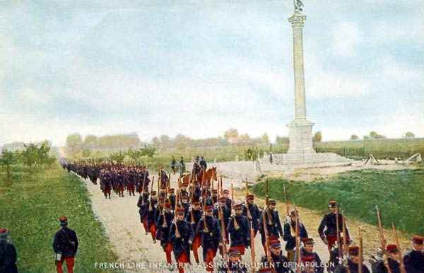 Французские солдаты у монумента Наполеону в деревне Vauchamps под Марной