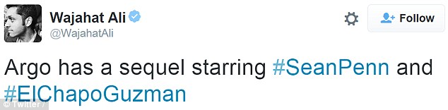 Твит: "История встречи Шона Пенна с Эль Чапо напоминает мне фильм Бена Аффлека "Операция Арго". Его обманули? Голливуд на помощь?"