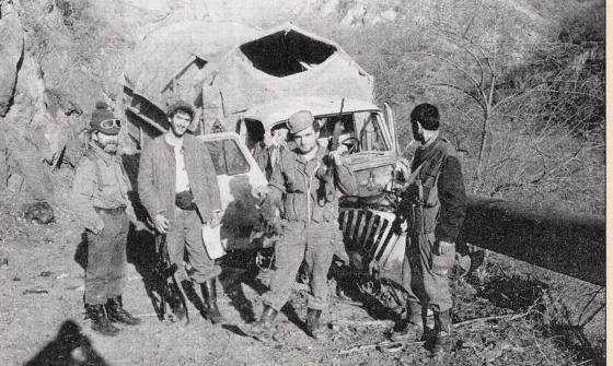 Автор (слева) с группой дашнаков около уничтоженной ими машины, принадлежащей МО Азербайджана