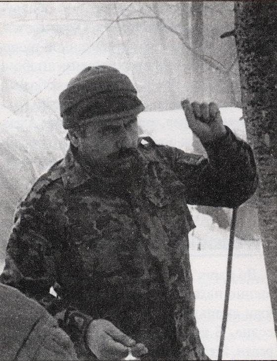 В феврале 1993 года в азербайджанском тылу довелось встретиться нос к носу с азербайджанской разведгруппой. Нас было трое, их четверо: три азербайджанца и один русский. Внезапно встретившись на тропе, мы сориентировались быстрее. Убитые были очень крупными для азербайджанцев — прекрасно развитые физически, хорошо экипированные. Было очевидно, что они принадлежат не к обычной воинской части, а к какому-то спецподразделению. Кстати, присутствие славян на азербайджанской стороне было значительным.