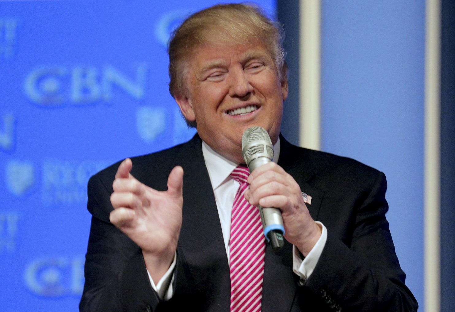 Дональд Трамп выступает на предвыборном мероприятии в Университете Риджент в Вирджиния Бич, штат Вирджиния, в среду (Джошуа Робертс/Рейтер)