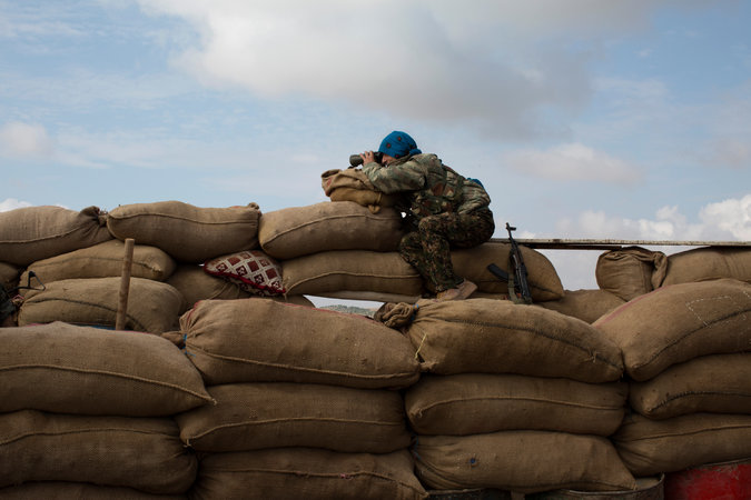 Член курдского ополчения на восточной стороне реки Евфрат в Саррин, Сирия, в октябре. Фото - Тайлер Хикс/"Нью-Йорк Таймс"