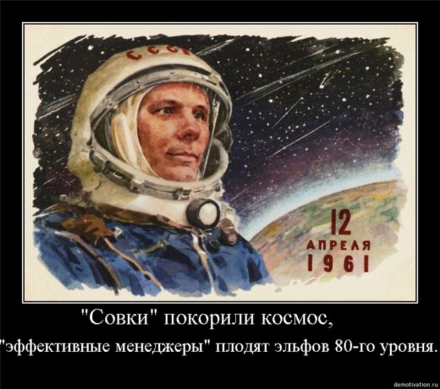 Впервые опубликовано: http://perevodika.ru/articles/6778.html дата публикации 06.11.09 11:00 Двадцатый век очень изменил жизнь людей. Мы и не заметили как под управлением торгашей наш мир стал ненастоящим. Игрушечная жизнь, игрушечные цели, игрушечные достижения – и все это – ради достижения торгашами ещё больших игрушечных прибылей, игрушечных, ибо капиталы тоже стали виртуальными: просто цифрами в базе данных компьютера. Реальное производство, реальная деятельность не приносят такой большой прибыли как торговля воздухом, поэтому, как можно больше народа вовлекается торгашами в виртуальную деятельность – вместо мастеров плодится так называемый "офисный планктон". А достижения в реальном мире подменяются "успехом": Белка и стрелка (IMG:http://i038.radikal.ru/0910/18/7f3844db5dbb.jpg) Но и реальная деятельность претерпела изменения – максимизация прибыли требует сокращения номенклатуры и удешевления производства. Отсюда все эти: одежда унисекс, автомобили разных марок, похожие как близнецы братья, вытеснение национальных продуктов и товаров универсальными товарами больших корпораций. В итоге, жизнь большинства людей унифицируется и упрощается, сводясь к замкнутому кругу, как говорят французы "булё, метро, додо" – "отпахал, добрался до дому и баиньки". Где уж в этих условиях задумываться о вечном и прекрасном, о мироздании и человеке: Бытие определяет сознание (IMG:http://s14.radikal.ru/i187/0910/c8/5f905e79bc26.jpg) Жизненная позиция (IMG:http://i070.radikal.ru/0910/b1/810c03629728.jpg) В СССР о гармоничном развитии человека хотя бы мечтали, хотя на практике получалось не всегда, но теперь даже цели такой не ставится. Наоборот, идеалом становится человек с мозаичным образованием (звучит почти как диагноз в психиатрии), не заморачивающийся высокими материями, ибо заморочки снижают производительность, следовательно, прибыль: инженер (IMG:http://i013.radikal.ru/0910/8d/018126e2e75d.jpg) В СССР было так (IMG:http://i068.radikal.ru/0910/7e/1cb059ae7b86.jpg) Океанический планктон постоянно мигрирует, так и офисный планктон дважды в день осуществляет массовую миграцию из дома на работу и обратно. Несколько лет назад читал, что через Париж ежедневно проезжает около миллиона машин по утрам и столько же – вечером, т.к. люди не могут найти работу там где живут и жилье – там, где работают. Но это не страшно – ведь у них есть работа, следовательно, они могут потратить заработанное, чтобы купить автомобиль и наслаждаться свободой передвижения (из дома на работу и обратно): личный автомобиль (IMG:http://i013.radikal.ru/0910/62/13dd605d56f7.jpg) Само слово "планктон" говорит о многом – мириады существ, проводящие жизнь в суете в поисках питательных веществ и стоящих почти в самом низу пищевой пирамиды. Быть планктоном не хочется. Заниматься виртуальным делом – работа непыльная, но гложет подсознательное ощущение ненастоящего, впустую прожитых лет. Вспомните детство – кто из мальчишек мечтал в детстве стать менеджером по продажам или биржевым маклером? Раньше таких не было, да и сейчас, думаю (надеюсь) немного. снайперши (IMG:http://i044.radikal.ru/0910/3f/c684a663e3bf.jpg) командир отряда (IMG:http://s44.radikal.ru/i104/0910/61/e4e7d702ceaa.jpg) Большинство все-таки мечтало о делах великих – если не миры в дальнем космосе покорять, так плавать по морям, как герои Стивенсона или ловить преступников, как Шерлок Холмс или, хоть мочить врагов как Рэмбо, Конан Варвар и Александр Невский. И ответ дан. Созданы целые виртуальные миры, где люди могут "прожить"