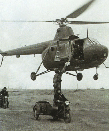Ми-1 1948 год ![]() ![]() ![]() Разработка вертолета началась в 1947г. под руководством М.Л.Миля, которым был предложен проект легкого многоцелевого вертолета для военного и гражданского применения. Предварительно под руководством М.Л.Миля в Центральном аэрогидродинамическом институте (ЦАГИ) была спроектирована и построена натурная геликоптерная установка НГУ для аэродинамических исследований полноразмерного несущего винта, использованного затем для вертолета, получившего обозначение ГМ-1. На авиационном заводе в г. Киеве было построено три опытных вертолета: первый полет первого опытного вертолета состоялся 28 сентября 1948г. (летчик-испытатель М.К.Байкалов), позже в 1948-1949гг. - остальных двух опытных вертолетов (летчики-испытатели Г.А.Тиняков, В.В.Виницкий и М.Л.Галлай). Государственные испытания третьего опытного вертолета начались 10 сентября 1949г, а 21 февраля 1950г. было принято постановление Совета Министров СССР о начале серийного производства вертолета Ми-1 (ГМ-1). Серийное производство началось в 1950г. на Московском вертолетном заводе, а затем большой серией с 1952г. в Казани, что положило начало крупносерийному производству вертолетов в нашей стране. В 1954г. вертолеты Ми-1 стали производиться в Оренбурге и с 1958г. в Ростове. В 1957г. началось производство вертолетов Ми-1 по лицензии в Польше. Всего было в 1950-1960гг. построено более 2500 вертолетов, кроме того, 300 вертолетов было произведено в 1957-1960гг. по лицензии в Польше. При создании и доводке вертолета Ми-1 был использован ряд оригинальных технических решений, среди которых система управления несущего винта с инерционными демпферами, снабженная впоследствии необратимыми гидроусилителями, объединение систем управления общим шагом несущего винта и мощностью двигателя в единую систему "шаг-газ", противооблединительная система для лопастей несущего и рулевого винтов и другие. По своим летно-техническим характеристикам вертолет Ми-1 приближался к известному американскому вертолету Sikorsky S-51, созданному в 1946г, и английскому вертолету Bristol 171, созданному в 1947г, однако, в отличие от этих вертолетов, строившихся непродолжительное время небольшой серией (Sikorsky S-51 в 1947-1951гг, построено 379 вертолетов и Bristol 171 в 1950-1954гг, построено 178 вертолетов) и явившихся "переходными" вертолетами, нашедшими ограниченное применение и замененными вскоре более совершенными вертолетами, вертолеты Ми-1 получили широчайшее практическое использование в вооруженных силах и народном хозяйстве нашей страны и во многих странах, куда они экспортировались, хорошо зарекомендовав себя в эксплуатации. О высоких летно-технических характеристиках вертолетов Ми-1 свидетельствуют установленные в 1958-1968гг. 27 международных рекордов, среди которых рекорды скорости 210.535, 196.452 и 141.392км/ч на базе 100, 500 и 1000км, высоты 6700м и дальности полета 1654.571км, а также 11 женских рекордов. Вертолет Ми-1 производился в следующих модификациях: Ми-1 - стандартный вариант с одним пилотом и тремя пассажирами; Ми-1НХ - для применения в народном хозяйстве, использовался для перевозки пассажиров и почты, для чего был снабжен подвесными контейнерами; Ми-1У - учебно-тренировочный вертолет с двойным управлением и сиденьем инструктора, широко использовался в ДОСААФ; санитарный - с двумя подвесными гондолами по бокам фюзеляжа для больных, соединенными с кабиной, и столиком для м