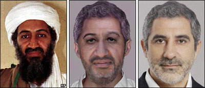 Фотографии Бен Ладена - реальная от 1998 г. и две "состаренные":