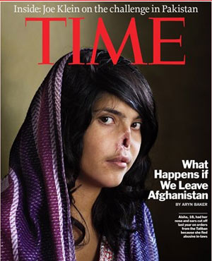 Американская пресса изо всех сил пытается сохранить поддержку американским населением войны в Афганистане. Например, журнал Time вышел вот с такой шокирующей фотографией искалеченной афганской женщины на обложке: