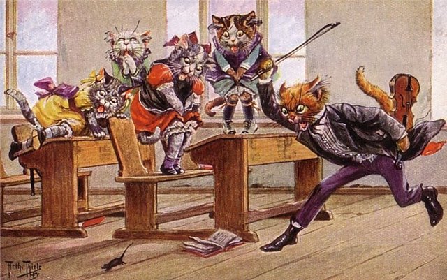 "Ласковый" мурлыка - кот Баюн Кто не знает кота Баюна из «Руслана и Людмилы»? Я надеюсь, что таких нет, и строчки: "и днем и ночью кот ученый, все ходит по цепи кругом" известны всем, посетившим этот пост. Но не всегда он предстает добрым сказочником, как в поэме Пушкина. ![]() Гораздо чаще он является в образе жестокого зверя, " черного, с огненными глазами" и "железными когтями", которыми так удобно вырывать сердца у всяких Иванов-царевичей. (читала в детстве такую сказочку, как видите, впечатление до сих пор осталось)) Сейчас кот Баюн встречается только в русских народных сказках. В них он песнями своими усыпляет всех, кто может его услышать. А тех, кто поддался его чарам, он безжалостно убивает. По тем же сказкам, сидит он на высоком железном столбе, посреди заколдованного леса. Причем сидит не просто так, а охраняя некое сакральное место. Но не просто так попадают в сказки, так и Баюн, в них он пришел из славянских верований. Считается, что он кот Велеса, бога скотоводства, земледелия и богатства. Но Велес также и бог подземного царства , и покровитель музыкантов. Поэтому кот Баюн мурлыканьем своим насылает сон, не отличимый от смерти. Но тот, кто сможет добыть кота, найдет спасение от всех болезней и недугов – целебны сказки Баюна. В сказках упоминается и способ, как это можно сделать: "идти за котом с тремя колпаками железными, держать наготове железные клещи и три прута: один железный, другой медный, третий оловянный. Разобьет кот два колпака, а третий не одолеет, хватай его клещами да прутами охаживай. Два прута сломаешь, пока одолеешь Баюна. Будет кот в это время сказки рассказывать - не слушай, а на третьем пруте оловянном взмолится кот и будет служить тебе верно. " "Железный столп здесь можно рассматривать как символ мировой оси, а окружающий его дремучий лес будет обозначать вселенную. Человек, попавший в сей мир случайно, без цели, погружается в иллюзорное существование сна и бесславно гибнет, растворившись в нем. Тот же, кто пришел исполнить свое предназначение, и готов, и способен отринуть иллюзии, может пройти сквозь лес, обретя мудрость и силу, прежде ему недоступные. В общем, можно считать, что сон Кота Баюна - и есть тот мир, в котором мы, сонные, бессознательно бредем, и он существует, только пока длится его колдовство. А можно представить, что наш маленький чудесный мир надежно защищен мягким и теплым объятием спящего кота, в чьей непроглядно черной шерсти мерцают звезды." ![]() Сохранилось упоминание о коте Баюне и в детских сказочках-страшилках. Серкается. На улице становится темно и пустынно. По городу идёт Кот Баюн. На хвосте у него узелок висит. На спине котёнок сидит. Подходит он к дому, отворяет окно и подаёт котенка. Девочка увидала и говорит: - Какой хороший котенок! Возьму его себе! И забрала котенка. Девочка легла спать. Кот Баюн доволен и мурлыкает: - Мурр-мурр, усни! Мурр-мурр, усни! Девочку сладкий сон стал одолевать. Дрёма на глаза накатилась. И видится ей, что она белочка с золотым орешком, с ветки на ветку прыгает. Чудится, что она рыбка - серебряная спинка, по морю-океану плывет и корабли обгоняет. Снится, что она жаворонок, над полем летает, песенки распевает и солнышко крылышками достаёт. Идёт дальше Кот Баюн. Отворяет окно в другом доме. Подаёт котенка. Мальчик увидал и говорит: - Люблю котят мучить! Возьму и этого! Мальчика стал сон од