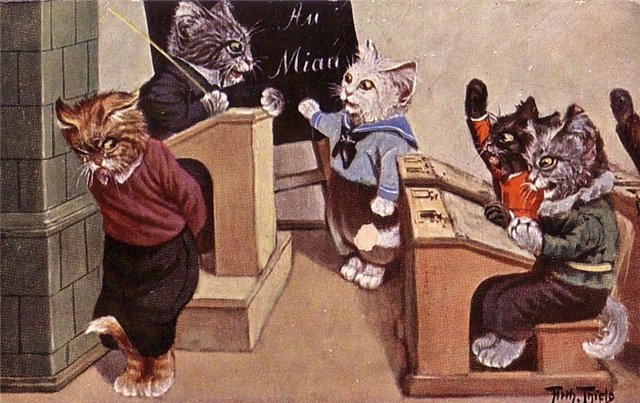 Вот вам весело, а у меня сегодня чуть личный Котокалипсис не случился. Гуляю сегодня днём с Бравым, у нас небольшой парк рядом. Погода, природа, птички щебечут. Короче, идём, беды не чуем. Впереди (довольно далеко) парочка с чёрной животинкой. Слышны, как положено,команды "ко мне", "рядом". Подошли мы поближе... Батюшки, это ж не собачка. Кошка! Видали мы кошек на поводках, без поводков... Но чтоб как собака, по команде гуляла... Кобель мой смотрит на меня, в глазах вопрос:"Мамуля, это что?" А я не знаю, что и ответить... Нда... Авторитет подорвался надолго, похоже. Вот такая катастрофа... Кошку послушно исполняющую команды хозяина я, конечно, представляю с трудом, но собачьи замашки иногда бывают и у кошек. У моей мамы жила кошка Моська - она любила сопровождать нас на прогулках ( правда без поводка), встречала в дверях всех приходящих в дом и если кто-то не нравился, то шипела и рычала. Но самое интересное началось, когда у меня родился сын. Ходить он начал на даче и вот наша Моська постоянно его сопровождала и шипела на всех, кто близко подходил, а подходить боялись т.к. эта "зверюга" была немаленького размера и весила 6 кг. А еще она приносила ему живых мышек - поиграть!!! Кстати, собакам от нее доставалось по полной программе. Здоровенные когти и зубы это вам не фунт изюма. |