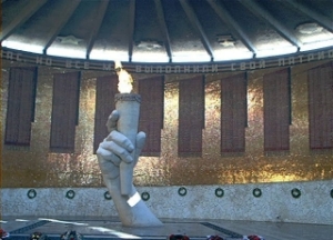 Есть в Волгограде место, самым тесным образом связанное с событиями Второй Мировой войны, с Великой Сталинградской битвой - это прославленный Мамаев курган с "Историко-мемориальным комплексом "Героям Сталинградской битвы". Мамаев курган, господствующий над основной частью города и обозначавшийся на военно-топографических картах, как Высота-102,0 являлся главным звеном в общей системе обороны Сталинградского фронта. Именно он стал ключевой позицией в борьбе за волжские берега. Здесь в последние месяцы 1942 года проходили ожесточенные бои. Склоны кургана были перепаханы бомбами, снарядами, минами. Почва смешалась с осколками металла. Это место огромных людских потерь… Именно здесь, в районе Мамаева кургана, 2 февраля 1943 года закончилась Сталинградская битва. Название Мамаев Курган, как гласит легенда, связано с именем татарского военачальника Мамая. Идея сооружения в городе-герое величественного монумента, в память о великом сражении, возникла почти сразу после окончания битвы. Грандиозный масштаб и сложность композиции задуманного ансамбля потребовали больших сроков для его осуществления. Начато сооружение монумента в мае 1959 года, а окончено 15 октября 1967 года, когда памятник-ансамбль Героям Сталинградской битвы был торжественно открыт. Именно памятник-ансамбль, как высшая форма монументального искусства, позволил авторскому коллективу наиболее полно передать размах массового героизма, раскрыть смысл и значение Сталинградской битвы, многопланово и разносторонне, воплотив конкретные художественные образы в различных видах скульптуры, в ее синтезе с архитектурой и природой. "Мамаев курган" 10 мая 2009 года Первая лестница на пути к вершине кургана. Эта надпись видна с дороги, проходящей перед Мамаевым курганом. (IMG:http://img-fotki.yandex.ru/get/3703/marsadykova.0/0_1bba8_1f303ceb_L.jpg) Флаги в честь Дня Победы. (IMG:http://img-fotki.yandex.ru/get/3702/marsadykova.0/0_1bba9_da4d4109_L.jpg) Монументы Мамаева кургана и маленький житель Волгограда. (IMG:http://img-fotki.yandex.ru/get/26/marsadykova.0/0_1bbaa_65f0d6cf_L.jpg) «Стоять насмерть» (IMG:http://img-fotki.yandex.ru/get/3704/marsadykova.0/0_1bbad_4d9c6926_L.jpg) Стены-руины (IMG:http://img-fotki.yandex.ru/get/3009/marsadykova.0/0_1bbae_b9c2f0b4_L.jpg) Сообщение отредактировал Rebel_tm - 19.8.2009, 12:42 |