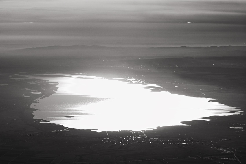 Вечерний снимок с воздуха озера неподалеку от Вены: