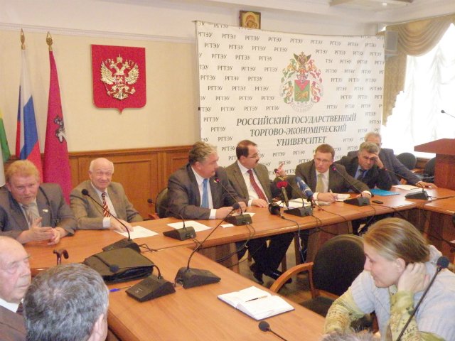 На таких условиях, по словам сирийского посла, Запад готов отказаться от санкций в отношении страны … Вчера, 6 октября, по приглашению ректора Российского государственного торгово-экономического университета, председателя Российского комитета солидарности с народами Ливии и Сирии Сергея Бабурина в университете выступил посол Сирийской Арабской Республики в России Риад Мухаммед Хаддад, сообщает пресс-служба комитета. В круглом столе «Ситуация в Сирии: тенденции и прогнозы» также приняли участие преподаватели и студенты РГТЭУ, ученые-востоковеды, представители Российского комитета солидарности с народами Ливии и Сирии, МОО «ВЕЧЕ» и других общественных организаций, представители сирийской диаспоры в России, в том числе учредители Сирийского комитета национального единства, блогеры, пишущие на политические темы, журналисты. Круглый стол проходил в формате телемоста с 15 городами России, что позволило студентам и преподавателям филиалов университета принять участие в обсуждении. Посол Сирии заявил, что руководство страны, которую он представляет, продолжит курс на реформы и будет последовательно выступать против любого внешнего вмешательства во внутренние дела государства. «Такое вмешательство направлено не на сохранение целостности Сирии, а на то, чтобы решить проблемы в стране вооруженным путем», - подчеркнул он. По словам посла, от Сирии в обмен на отмену санкций требуют отказаться от поддержки арабского сопротивления и народа Палестины. Риад Хаддад также отметил, что официальный представитель США открыто заявил, что им нужны в Сирии не реформы, а смена власти. Профессор РГТЭУ Марат Мусин задал вопрос о том, что делается в Сирии для противодействия информационной войне против страны. По словам посла, против Сирии действительно ведется война, и на 80% эта война ведется на информационном поле. Но Сирия не может в полной мере противостоять этой мощной мировой пропагандистской машине. Скажем, в Джизр-аш Шугуре были найдены два массовых захоронения людей, убитых экстремистами. 80 расчлененных тел. Сирийская сторона пригласила всех послов, журналистов ведущих мировых СМИ поехать туда и увидеть все своими глазами. Некоторые отказались. Но и те, кто приехал, а их было немало, не написали об этом ни строчки. По словам Риада Хаддада, в ходе этой поездки он попросил прокомментировать увиденное посла США в Сирии, но тот категорически отказался от комментариев. Поэтому все, что может сделать сирийское руководство, это используем все свои, достаточно скромные, возможности, распространять правдивые материалы о ситуации в стране. И, конечно, сирийцам нужна поддержка от российских журналистов и блогеров, подчеркнул посол. Сейчас в Сирию приглашены представители 12 ведущих информационных агентств. Посол также пообещал передать в Российский комитет солидарности с народами Ливии и Сирии видеоматериалы и документы, рассказывающие о войне против Сирии. Послу Сирийской Арабской республики также были заданы вопросы по ситуации в Ливии. По его словам, у Сирии есть политические принципы, один из них невмешательство в дела других государств. После начала агрессии против Ливии все увидели страдания народа, жертвы и разрушения. Ливийский урок показывает, что никто, включая НАТО, не может насильно принести демократию в отдельно взятую стра