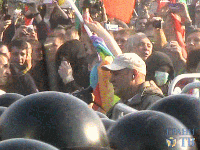 (про впопузиционеров с колготками на голове и радужными флагами)