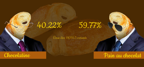 Опрос сайтом более чем 110000 французов установил, что почти 60% из них скажут pain au chocolat, а 40% - chocolatine.