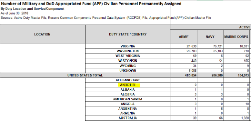 Официальная статистика численности военнослужащих Министерства обороны показывает, что войска США размещены в государстве "Акротири".