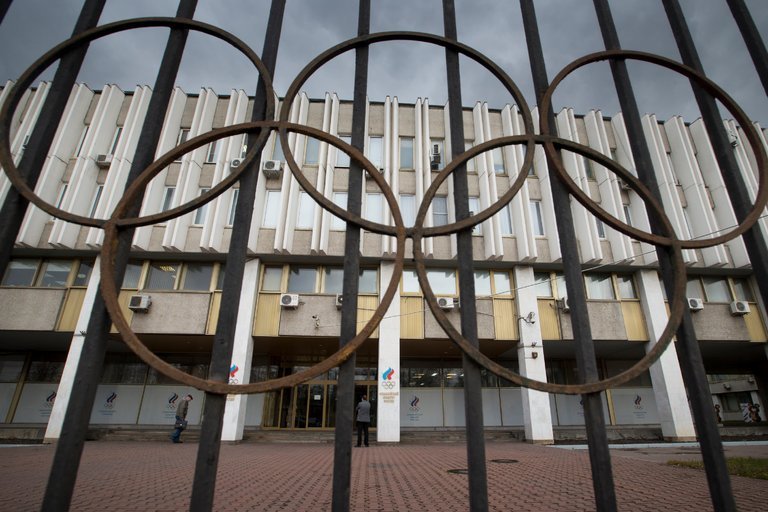 Многие из спортсменов, фотографии которых украшают офисы Олимпийского комитета, замешаны в допинговом скандале этого года, большое их количество были наказаны для проформы, а более 650 других теперь обвинены в допинге. На одной фотографии показаны русские, целующие медали, а на другой - параолимпийцы в инвалидных колясках держат букеты победителей над головами.