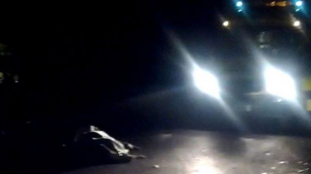 Фотография с телефона, сделанная на месте происшествия, показывает накрытое тело на дороге