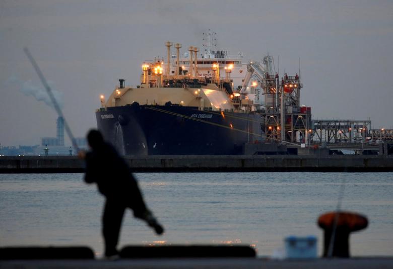 Танкер мембранного типа со сжиженным природным газом (СПГ) пришвартован у теплоэлектростанции в Футсу, на востоке Токио, Япония, 8 февраля 2017 г. "Рейтер"/Иссей Като/архив