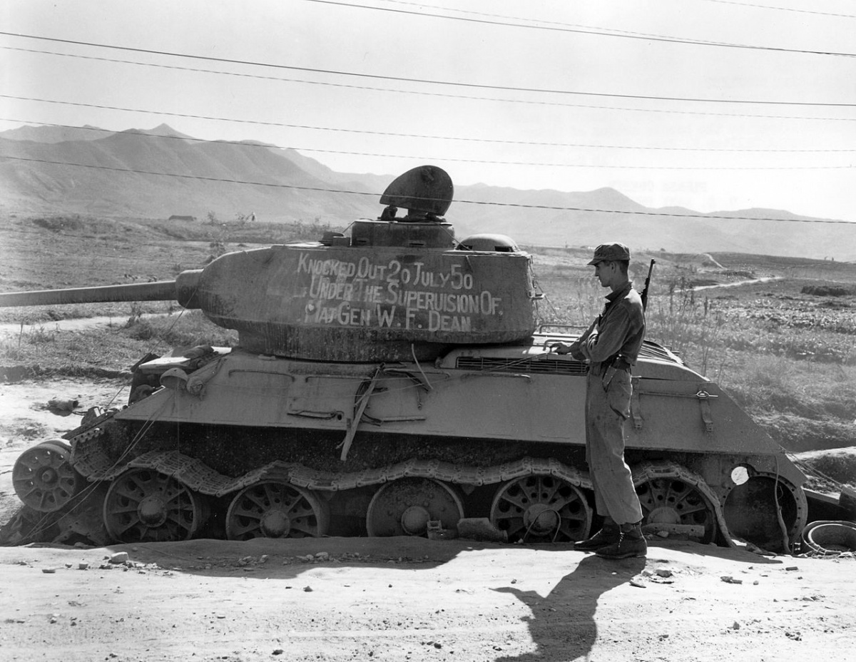Эти танки были спешно приведены в полную боеготовность, чтобы противостоять советским танкам Т-34 северокорейцев, которые до сих пор почти беспрепятственно действовали против легких танков и противотанкового оружия, имевшегося у их противников. Эти два типа танков никогда ранее не встречались в бою, но была надежда, что 90-мм пушка и толстая броня сделают “Першинг” М-26 достойным противником советской машины.