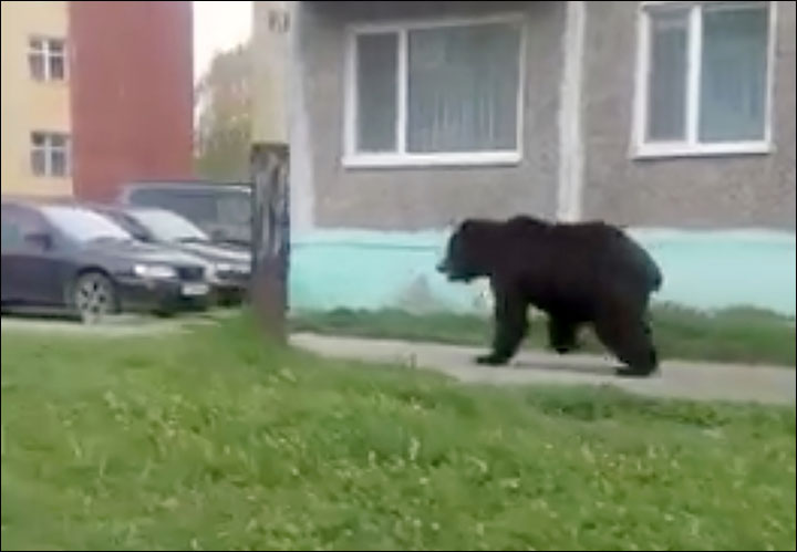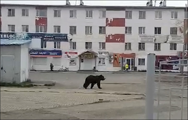 Жители Вилючинска сняли на видео медведя прогуливавшегося по улицам закрытого для иностранцев города-порта.