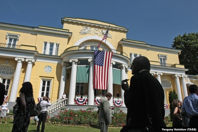 Американский посол (в то время) Артур Хартман и его жена Донна вынуждены были принимать участие в уборке их собственной официальной резиденции Спасо-Хаус (на снимке) .