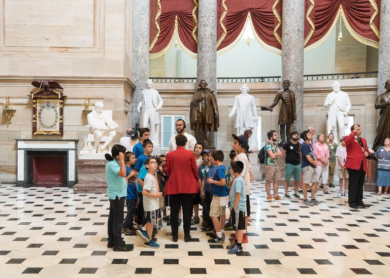 Посетители осматривают Национальный зал скульптур в Капитолии в четверг. Фото - Джастин Т. Геллерсон для "Нью-Йорк Таймс"