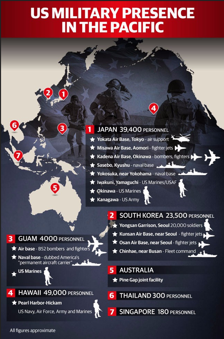 Северная Корея сегодня повторила предыдущие утверждения, что ее план состоит в том, чтобы запустить ракеты таким образом чтобы они упали в океане "вблизи" Гуама, а не на самом Гуаме. США заявили, что это было бы недопустимой провокацией.