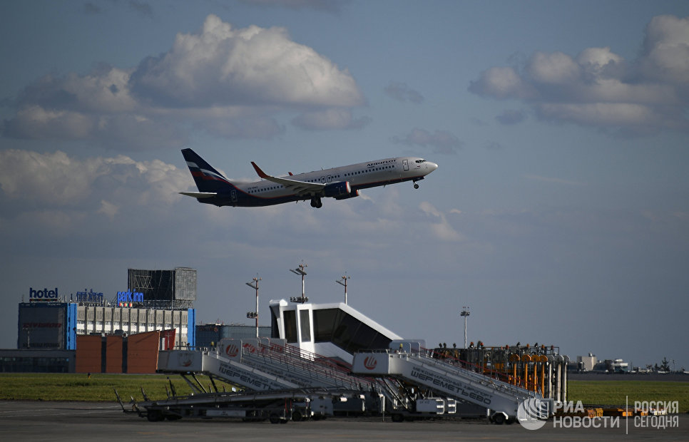 Boeing 737 компании "Аэрофлот" взлетает в аэропорту "Шереметьево" в Москве