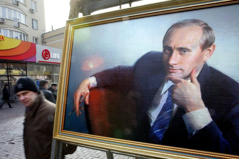 Портрет президента России Владимира Путина на Арбате в Москве. Credit Mladen Antonov/Agence France-Presse — Getty Images