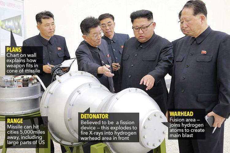 Ранее в этом месяце мировые лидеры жестко критиковали "маниакального" Кима после того, как северокорейский тиран взорвал ядерную бомбу, в два раза более мощную чем сброшенная на Хиросиму.