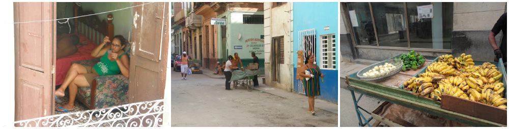 Слева направо: Балкон Старой Гаваны; лоточник — каретийеро — на улице Старой Гаваны; сегодня в продаже: чеснок, бананы и ахИ — сладкий перец. Фото: из личного архива