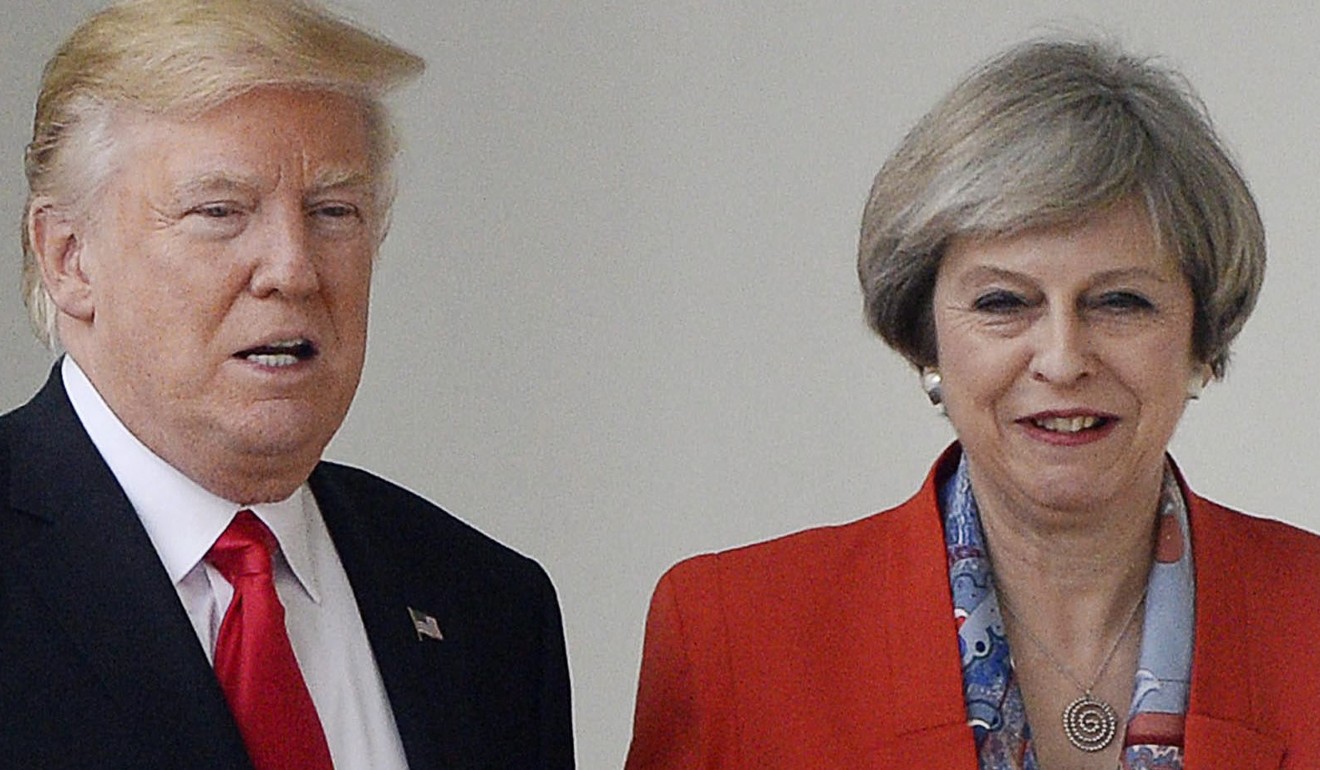 Американский президент Дональд Трамп с британским премьер-министром Терезой Мэй. Великобритании и другим странам нравится описывать себя как друзей и партнеров Америки, даже при том, что эти термины подразумевают равенство, которое далеко не очевидно. Photo: EPA