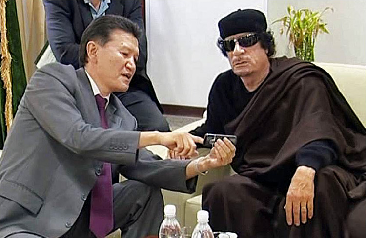 Кирсан Илюмжинов и Муаммар Каддафи. Кадр телеканала ТВЦ