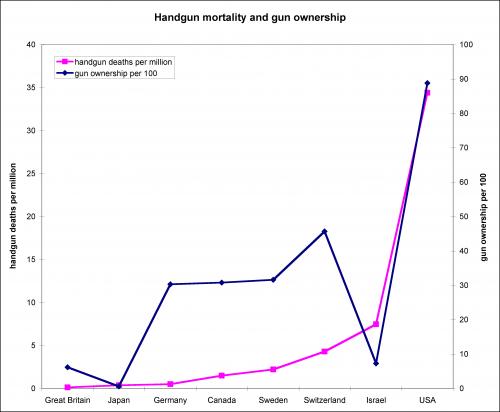 -В случае Великобритании количество убийств с применением огнестрельного оружия в 53 раза меньше, чем в США. США на душу населения. [Не утруждайте себя ошибочными ссылками на Швейцарию или Израиль, где большинство граждан - это военные резервисты.]
