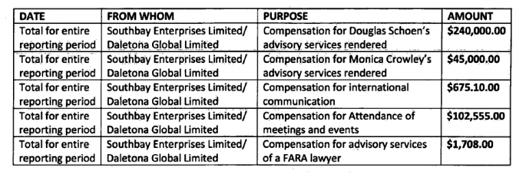 Остаток суммы того года в 1,7 миллиона долларов от Пинчука через Шона пошел двум структурам - Southbay Enterprises Ltd., которая была структурой с Багамских островов, которую недавно ликвидировали; и Daletona Global Ltd., это структура с Британских Виргинских островов, документы о которой появлялись в Панамских архивах. Daletona связана с Bovalan Ltd и человеком по имени Аласдер Кэмерон. В 2013 году о Daletona сообщалось в лондонской газете, что ее контролируют Пинчук и его жена.