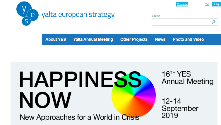Надпись на снимке с экрана: "Ялтинская европейская стратегия - Счастье сегодня - Новые подходы к миру в кризисе - 16-я ежегодная встреча - 12-14 сентября 2019"