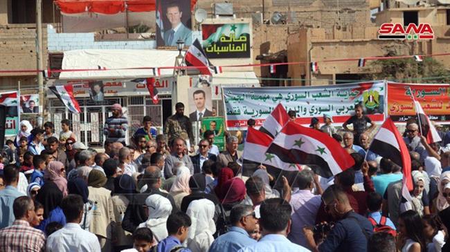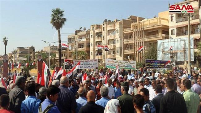 В воскресенье жители административного центра провинции Дейр аль-Зор собрались на круговом перекрестке аль-Интисар, чтобы осудить турецкую агрессию и потребовать полного вывода войск США с сирийской территории, сообщило агентство "САНА".