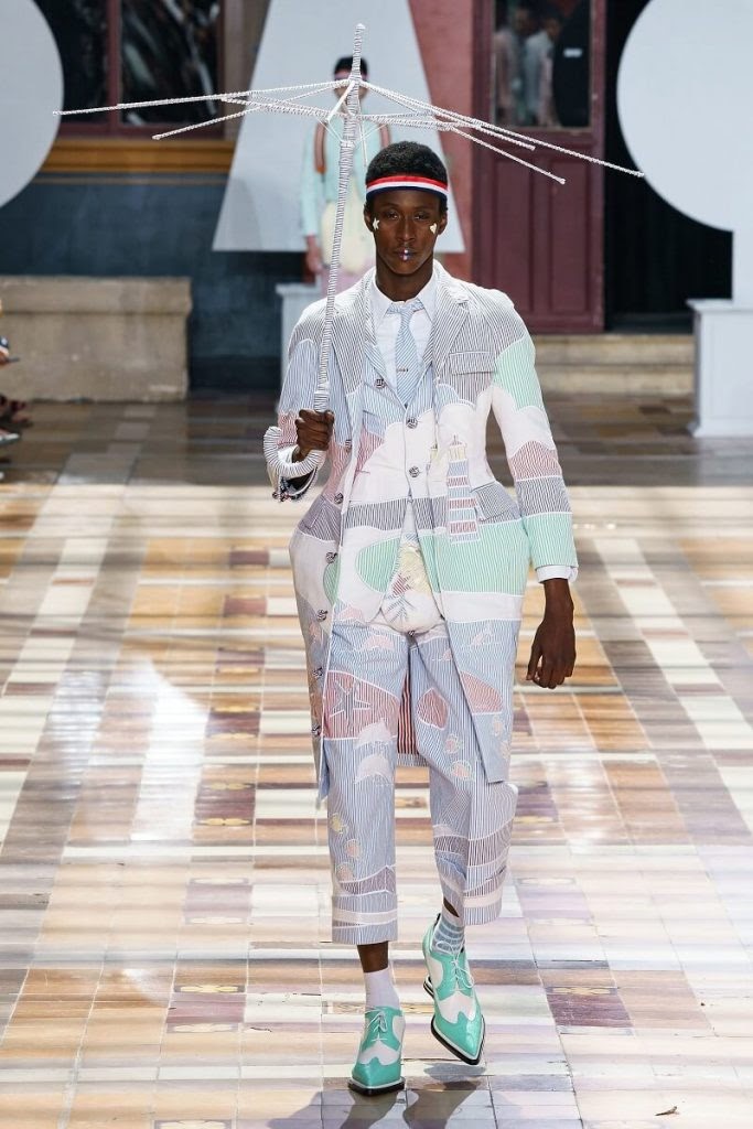 Все возможно в коллекции Тома Брауна, поскольку он открывает свой сад фантазии для игры, а не для работы. Театральная постановка имеет решающее значение для его коллекции, так как многие пытались пересоздать мужской костюм, но немногим удалось потрясти воображение. 3D-силуэты Тома Брауна, полные игривости, стали глотком свежего воздуха для прославленного парижского подиума