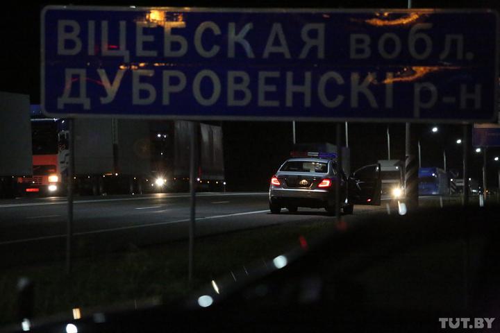 После 22.00 AUTO.TUT.BY был в Дубровенском районе, который примыкает к границе с Россией. Километров за семь-восемь до нейтральной территории заметили на дороге первое затруднение движения: в крайней правой полосе колейка из фур. По левой медленно двигались легковые авто и микроавтобусы.