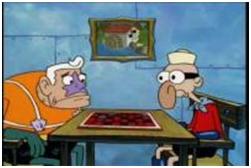 Персонажи третьего плана, которых хотелось бы отметить особо. Даже манера изображения наводит на подозрения. На одном персонаже типичный морской костюмчик, на другом даже, как кажется, что-то вроде лифчика. Все сомнения развевает их биография: Очкарик и Морской Герой - неразлучные друзья, никогда не были женаты, детей нет, в прошлом совершили несколько подвигов по спасению города от каких-то катастроф, на данный момент вместе доживают свой век.