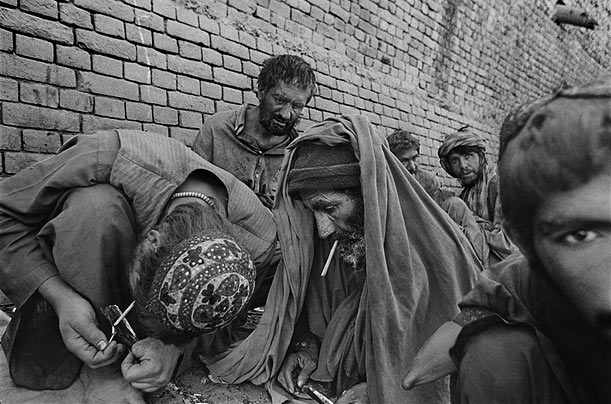 Перед тем, как выйти за пределы страны, где он был получен, наркотик губит заметную часть местного населения. Согласно отчету ООН за 2005 год, в Афганистане (население 35 млн. человек) было более 200 тыс. опиумных и героиновых наркоманов. Этот снимок был сделан в Кабуле, в развалинах Старого города.