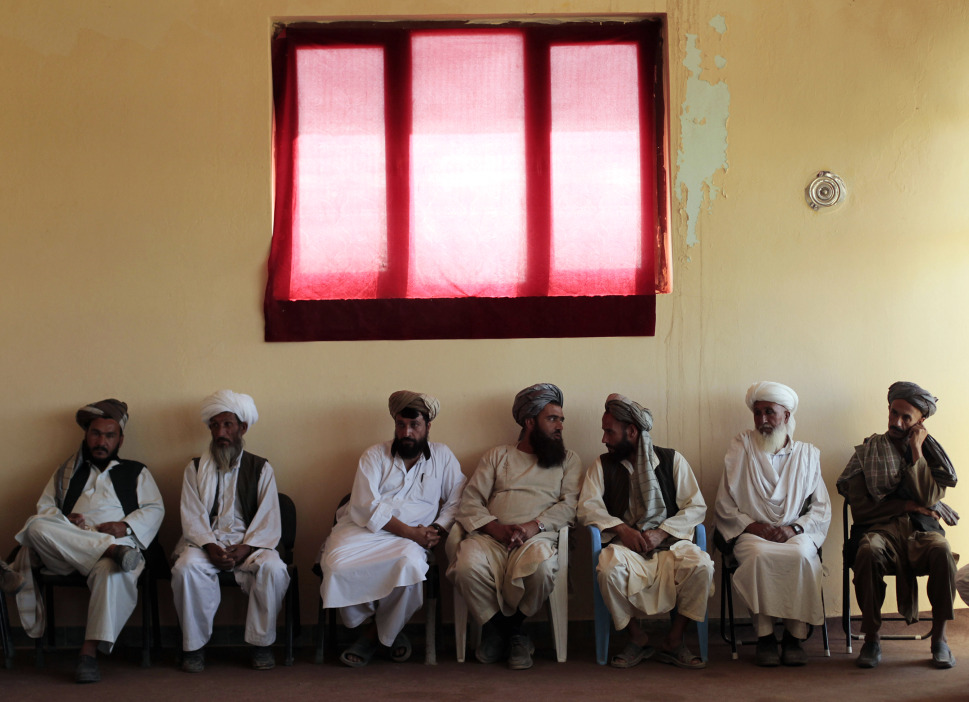 Деревенские старейшины в ожидании начала встречи деревенского совета (шуры) с афганскими госчиновниками и американскими офицерами, Бала Мургаб, 29 июня.