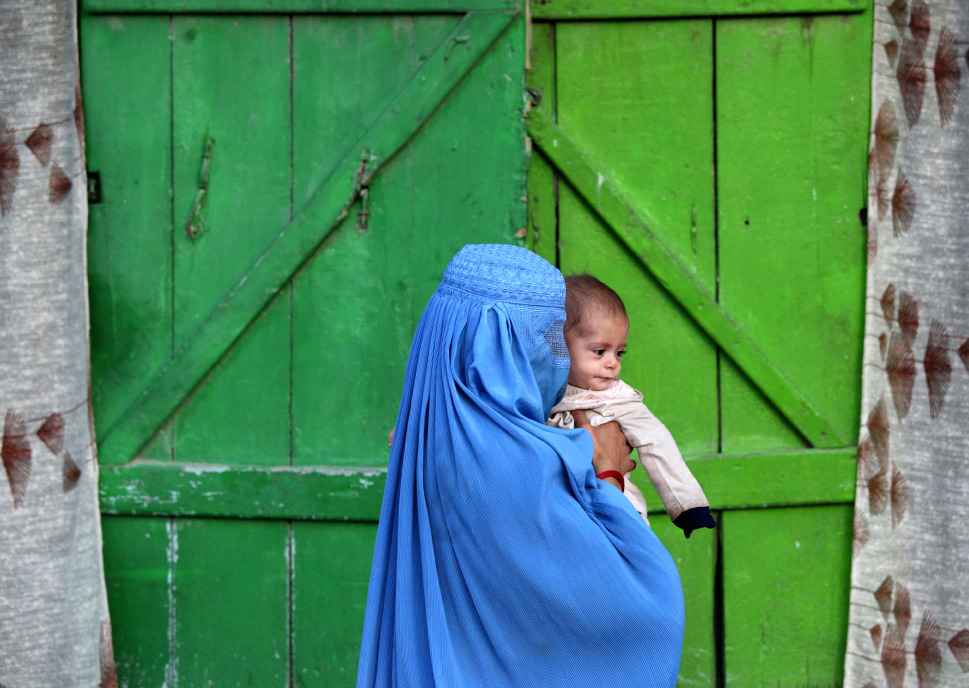 Женщина в парандже с ребёнком в Старом городе Кабула, 19 июня.