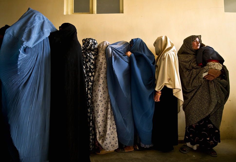 Афганские женщины стоят в очереди на пункте голосования в Кабуле, 18 сентября.